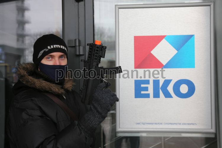 Members of the Ukrainian Action Movement brought a symbolic machine to the central office of the ECO Society
