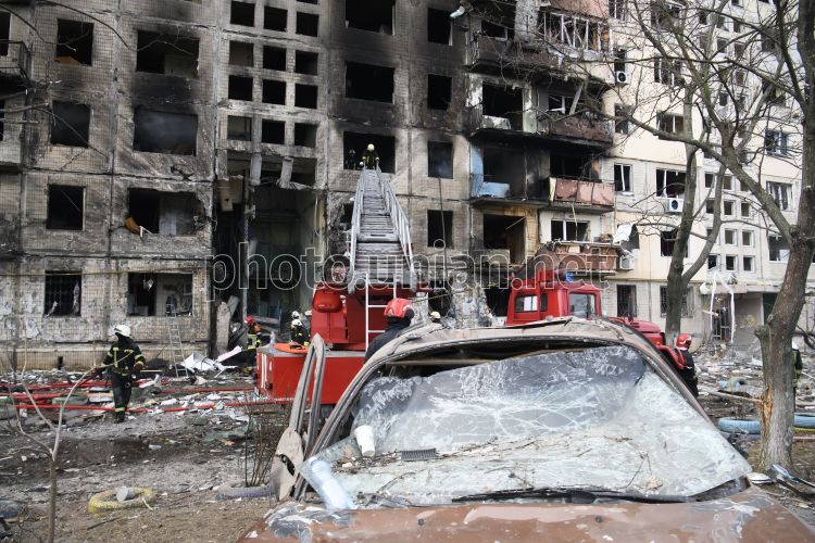 In Kyiv, an artillery shell hit a high-rise building on Obolon