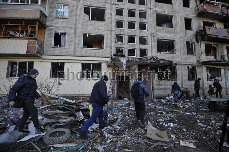 Consequences of the fire after the projectile hit a residential building in Kyiv