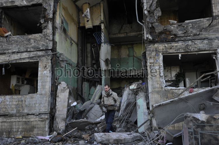 Consequences of the fire after the projectile hit a residential building in Kyiv