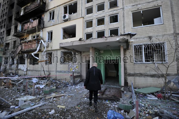 Consequences of the fire after the projectile hit a residential building in Kyiv