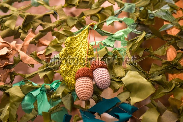 Volunteers weaving a camouflage net in Zaporizhzhia