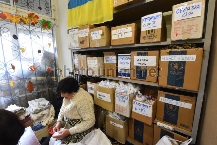 Volunteers made a camouflage mesh-picture in Zaporozhye