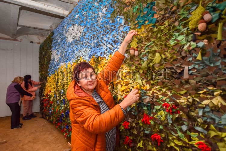 Volunteers made a camouflage mesh-picture in Zaporozhye