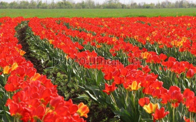 Tulip plantation in Yantarnoye village