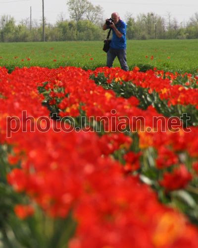 Girl photographs tulips
