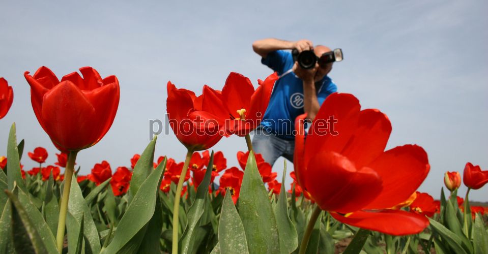 Girl photographs tulips