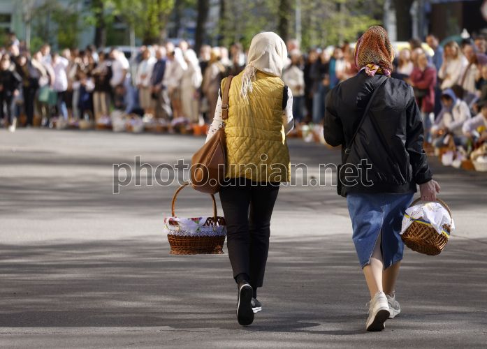 Blessing of Easter baskets near St. Vladimir's Cathedral in Kyiv