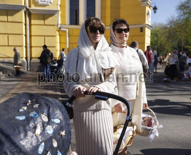 Blessing of Easter baskets near St. Vladimir's Cathedral in Kyiv