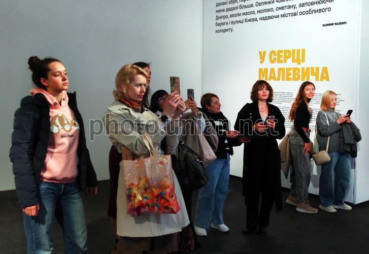 Visitors near the works of Ukrainian People's Artist Maria Prymachenko