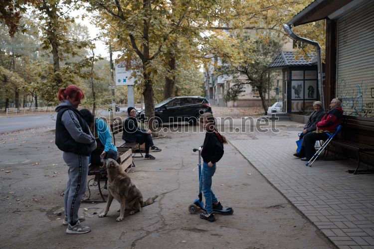 Local residents on a street in Kherson