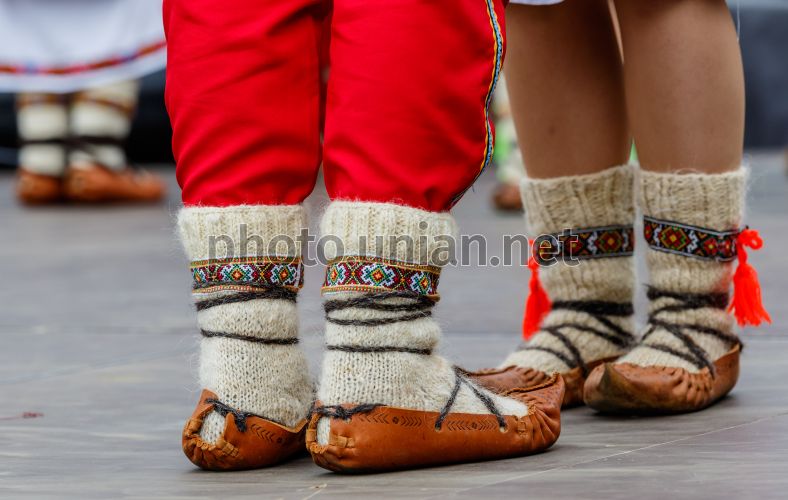 Young people in Hutsul postols (shoes made of genuine calfskin)