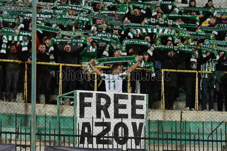 "Free Azov" poster on the podium