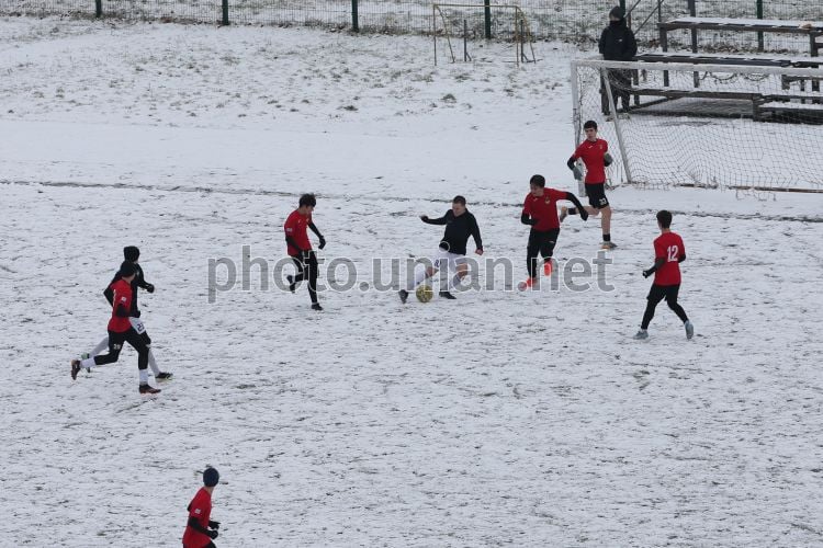 A woman and a girl take a selfie on a snowy street in Kyiv