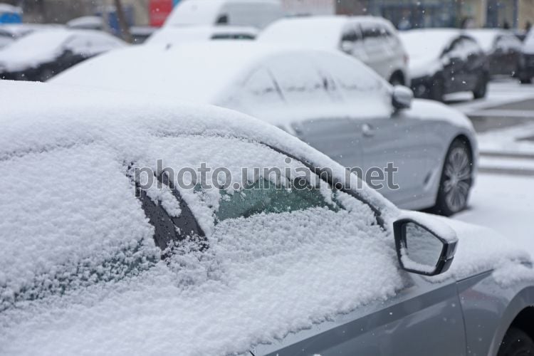 A woman and a girl take a selfie on a snowy street in Kyiv