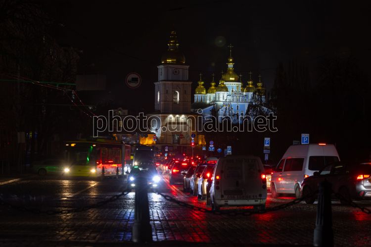 Musicians of the National Honored Academic Symphony Orchestra of Ukraine rehearse in semi-darkness during a blackout in Kyiv