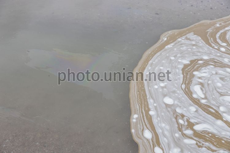 Environmentalists clean up oil slick in the sea off the coast of Odessa