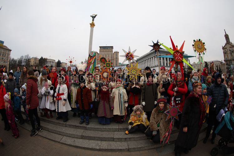 People carry Christmas stars through the center of Kyiv for those who died for Ukraine