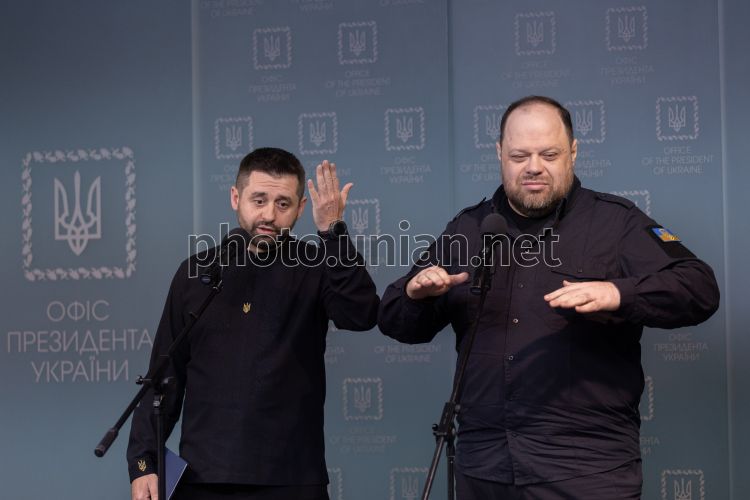Briefing by Verkhovna Rada Chairman Ruslan Stefanchuk and Servant of the People faction leader David Arakhamia in Kyiv