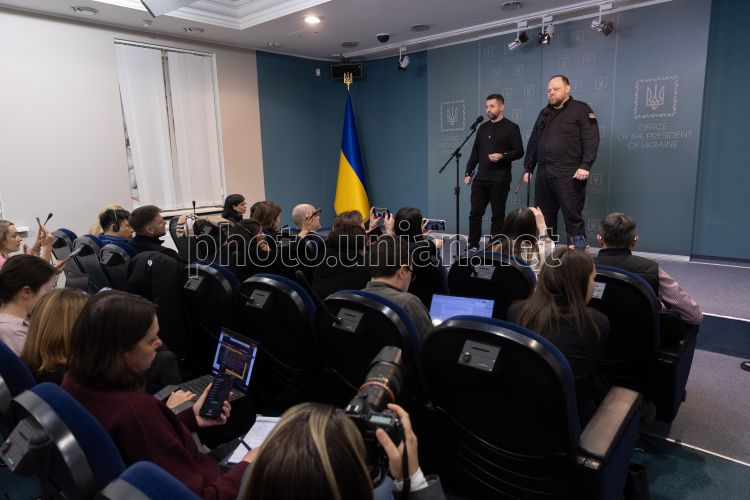 Briefing by Verkhovna Rada Chairman Ruslan Stefanchuk and Servant of the People faction leader David Arakhamia in Kyiv