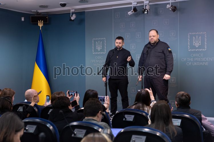 Briefing by Verkhovna Rada Chairman Ruslan Stefanchuk and Servant of the People faction leader David Arakhamia in Kyiv