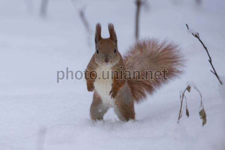 Birds and squirrels in a winter park in Kyiv, January 16, 2026.
