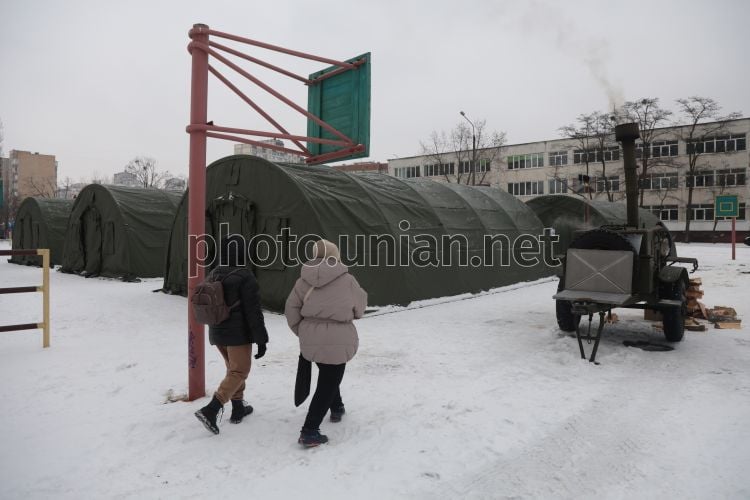 Two tent camps were set up in the Troyeshchyna district of Kyiv due to the lack of heating and electricity