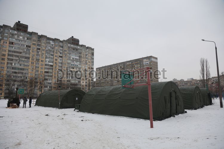 Two tent camps were set up in the Troyeshchyna district of Kyiv due to the lack of heating and electricity