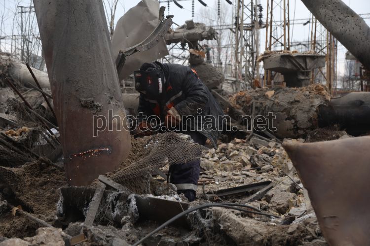 The aftermath of Russian missile strikes on the Darnitsa Thermal Power Plant in Kyiv