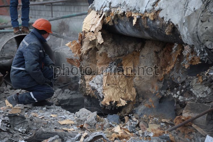 The aftermath of Russian missile strikes on the Darnitsa Thermal Power Plant in Kyiv