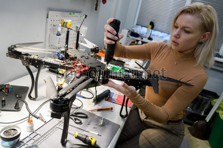 Volunteers assemble and test strike drones