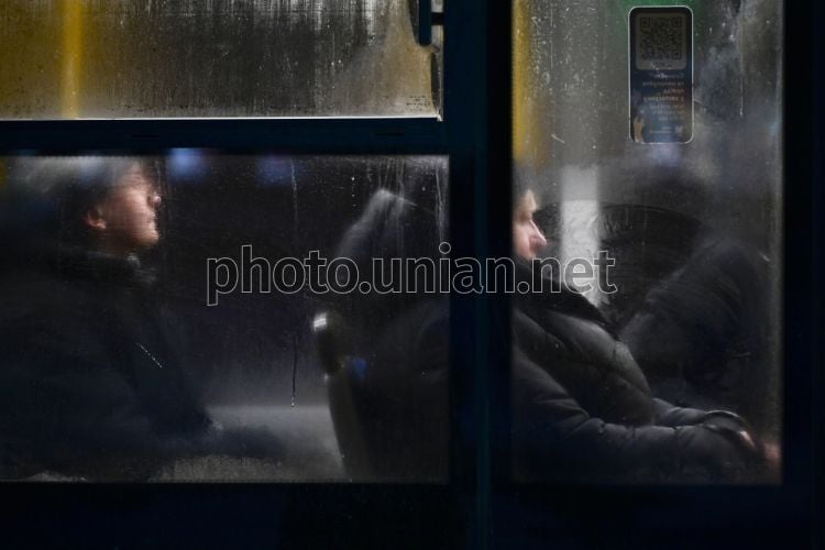 A man is carrying a sled with a child in the background of the Novus supermarket in Kyiv