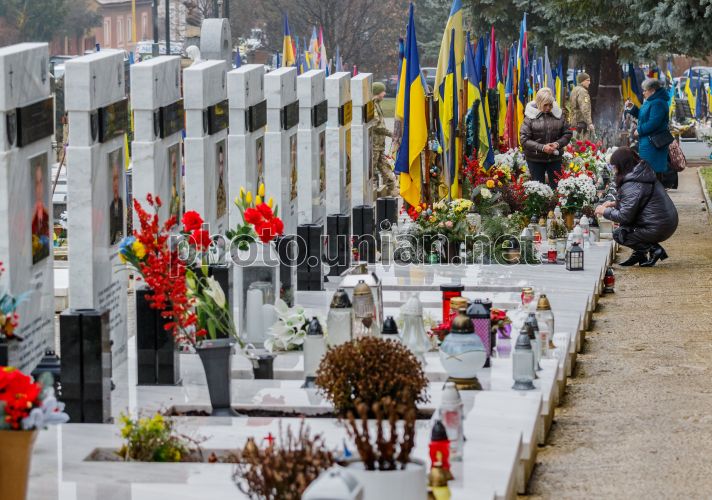 Graves of fallen Ukrainian defenders on the Hill of Glory in Uzhhorod