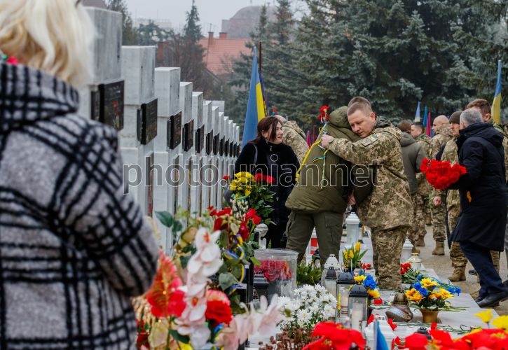 Graves of fallen Ukrainian defenders on the Hill of Glory in Uzhhorod