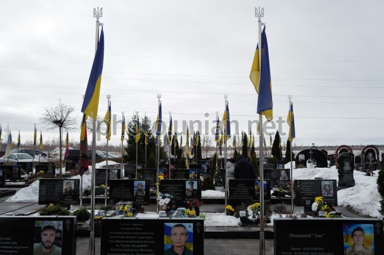 Military honor the memory of fallen defenders of Ukraine at the city cemetery in Bucha