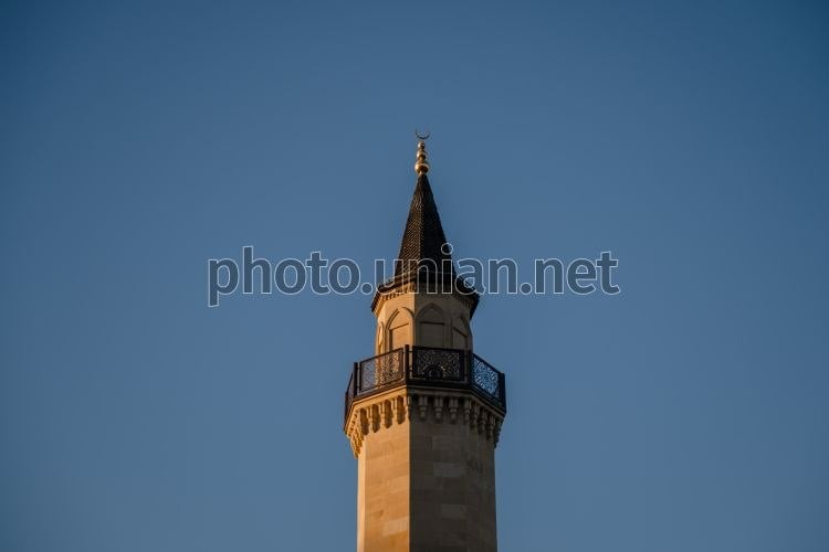 Minaret on the territory of the Ar-Rahma Cathedral Mosque in Kyiv
