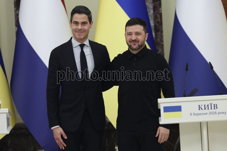 Joint press conference of the leaders of the Netherlands and Ukraine Rob Jetten and Volodymyr Zelenskyy in Kyiv