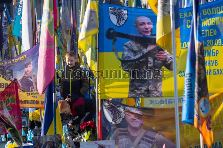 An improvised memorial to the fallen Ukrainian soldiers in Kyiv