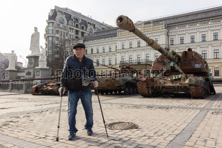 Destroyed Russian military equipment on Mykhailivska Square in Kyiv