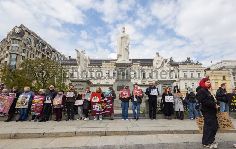 Participants of the weekly peaceful action "Don't be silent! The prisoner kills!" in Kyiv