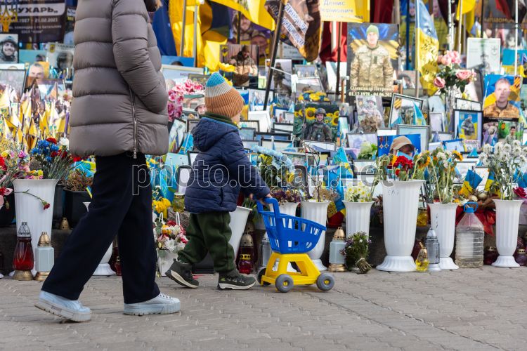 An improvised memorial to the fallen Ukrainian soldiers in Kyiv