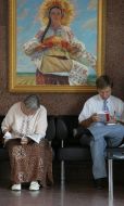 Participants in Ukrainian House communicate before the beginning of World congress of Ukrainians