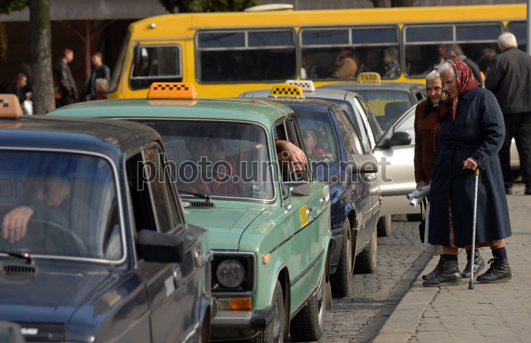 Elderly woman at the entrance to the underpass in the center of Kyiv