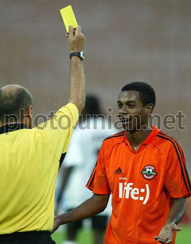 COMM An arbiter shows Donetsk Shakhtar player Fernandinho, No 7, a yellow card during the match against Kiev’s “Arsenal” of the 8-th round of Ukrainian Soccer Championship, Kiev, Sunday, September 11, 2005. The game was finished in a draw (0:0). Photo by UNIAN