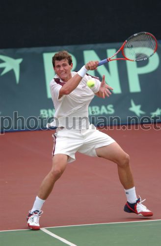 COMM 18-year-old tennis player Sergey Bubka junior, a son of the famous record-breaker in pole vault Sergey Bubka, plays a drawn game of the Davis Cup in Donetsk, Sunday, September 25, 2005. The game with finished with a score Ukraine-Bulgaria 4:1. Photo by UNIAN