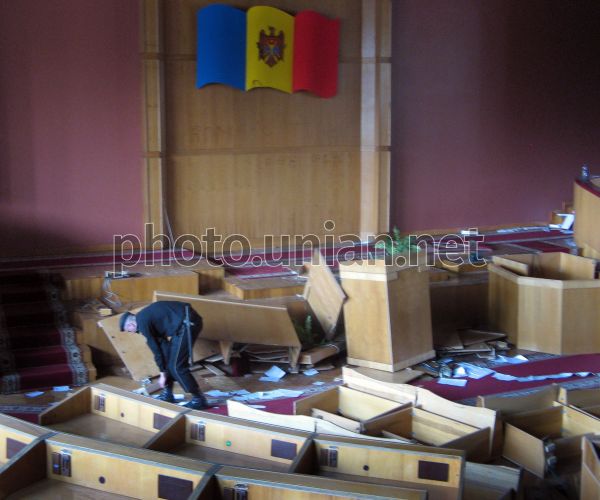 Thrown out safes, monitors and furniture from Moldavia parliament building