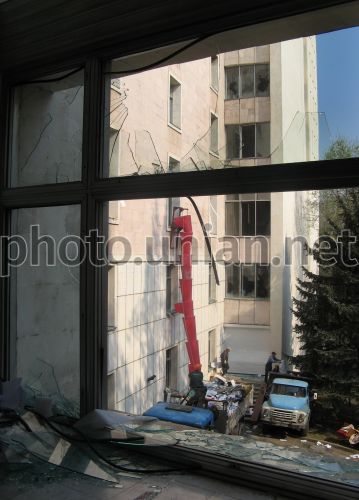The broken windows are in building of Moldavia presidential palace