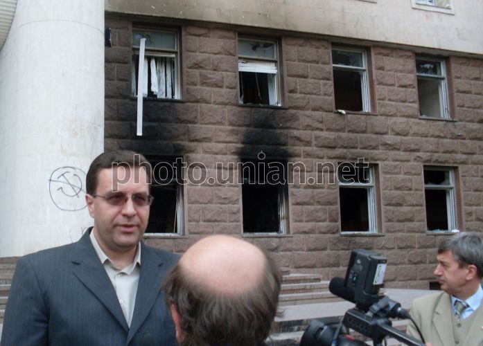 The broken windows are in building of Moldavia presidential palace