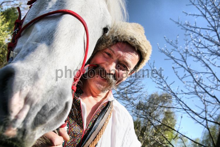 The father Nikolay holds an icon lamp with the Beneficial fire
