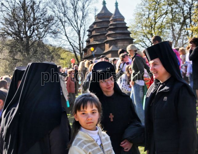 The father Nikolay holds an icon lamp with the Beneficial fire